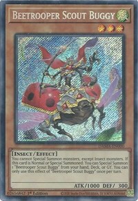 Description: You cannot Special Summon monsters, except Insect monsters. If this card is Normal or Special Summoned: You can Special Summon 1 "Beetrooper Scout Buggy" from your hand, Deck, or GY. You can only use this effect of "Beetrooper Scout Buggy" once per turn.