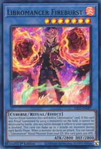 Description: You can Ritual Summon this card with a "Libromancer" card. If this card was Ritual Summoned by using a monster(s) on the field, it cannot be destroyed by battle, also any battle damage it inflicts to your opponent is doubled. This card can make up to 2 attacks on monsters during each Battle Phase. When a monster declares an attack: You can banish 1 "Libromancer" Ritual Monster from your GY; this card gains 200 ATK.