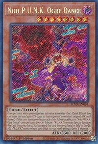 Description: Once per turn, when your opponent activates a monster effect (Quick Effect): You can make this card gain ATK equal to that opponent's monster's original ATK until the end of this turn. You can only use each of the following effects of "Noh-P.U.N.K. Ogre Dance" once per turn. You can Tribute 1 "P.U.N.K." monster; Special Summon this card from your hand. You can send this card from your hand or field to the GY; add 1 "P.U.N.K." monster from your Deck to your hand, except a Level 8 monster.