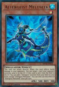 Description: This card can attack directly. When this card inflicts battle damage to your opponent: You can target 1 card your opponent controls; send it to the GY. If this card is sent from the field to the GY: You can add 1 "Altergeist" monster from your Deck to your hand, except "Altergeist Meluseek". You can only use this effect of "Altergeist Meluseek" once per turn.