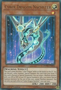 Description: This card's name becomes "Cyber Dragon" while on the field or in the GY. You can discard 1 other monster; Special Summon this card from your hand. If this card is Normal or Special Summoned: You can target 1 Machine monster with 2100 ATK or DEF in your GY; Special Summon it, also, you cannot Special Summon monsters for the rest of this turn, except Machine monsters. You can only use each effect of "Cyber Dragon Nachster" once per turn.