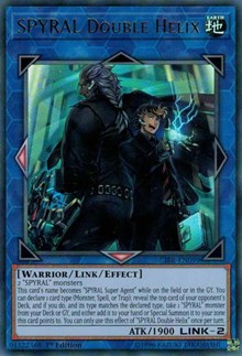 This card''s name becomes "SPYRAL Super Agent" while on the field or in the GY. You can declare 1 card type (Monster, Spell, or Trap); reveal the top card of your opponent''s Deck, and if you do, and its type matches the declared type, take 1 "SPYRAL" monster from your Deck or GY, and either add it to your hand or Special Summon it to your zone this card points to. You can only use this effect of "SPYRAL Double Helix" once per turn.