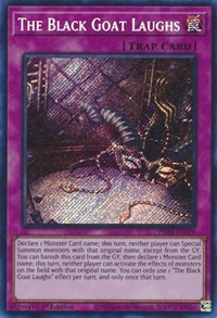 Description: Declare 1 Monster Card name; this turn, neither player can Special Summon monsters with that original name, except from the GY. You can banish this card from the GY, then declare 1 Monster Card name; this turn, neither player can activate the effects of monsters on the field with that original name. You can only use 1 "The Black Goat Laughs" effect per turn, and only once that turn.