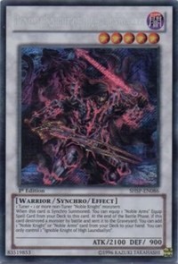 When this card is Synchro Summoned: You can equip 1 "Noble Arms" Equip Spell Card from your Deck to this card. At the end of the Battle Phase, if this card destroyed a monster by battle and sent it to the Graveyard: You can add 1 "Noble Knight" or "Noble Arms" card from your Deck to your hand. You can only control 1 "Ignoble Knight of High Laundsallyn".