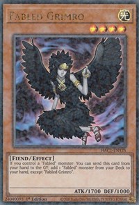 While you control a face-up Fabled monster, you can send this card from your hand to the Graveyard to add 1 Fabled monster other than Fabled Grimro from your Deck to your hand.