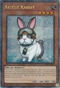 Description: Cannot be Special Summoned from the Deck. You can banish this card you control; Special Summon 2 Level 4 or lower Normal Monsters with the same name from your Deck, but destroy them during the End Phase. You can only use this effect of "Rescue Rabbit" once per turn.