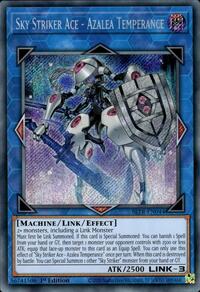 Must first be Link Summoned. If this card is Special Summoned: You can banish 1 Spell from your hand or GY, then target 1 monster your opponent controls with 2500 or less ATK; equip that face-up monster to this card as an Equip Spell. You can only use this effect of "Sky Striker Ace - Azalea Temperance" once per turn. When this card is destroyed by battle: You can Special Summon 1 other "Sky Striker" monster from your hand or GY.