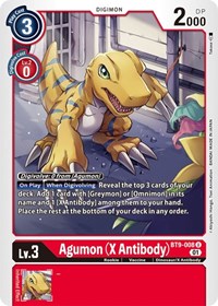 [On Play][When Digivolving] Reveal the top 3 cards of your deck. Add 1 card with [Greymon] or [Omnimon] in its name and 1 [X Antibody] among them to your hand. Place the rest at the bottom of your deck in any order.