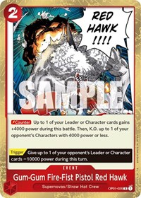 Description: [Counter] Up to 1 of your Leader or Character cards gains +4000 power during this battle. Then, K.O. up to 1 of your opponent's Characters with 4000 power or less.