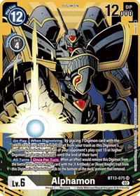Description: [On Play] [When Digivolving] By placing 1 Digimon card with the [X Antibody] or [Royal Knight] trait from your trash as this Digimon's bottom digivolution card, all of your opponent's play cost 10 or higher Digimon can't attack players until the end of their turn.