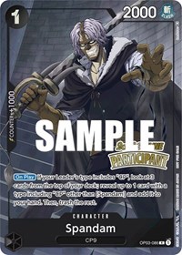 [On Play] If your Leader's type includes "CP", look at 3 cards from the top of your deck; reveal up to 1 card with a type including "CP" other than [Spandam] and add it to your hand. Then, trash the rest.
