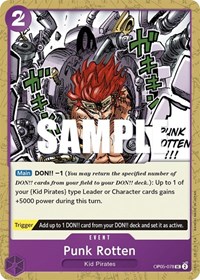 Description: [Main] DON!! -1 (You may return the specified number of DON!! cards from your field to your DON!! deck.): Up to 1 of your [Kid Pirates] type Leader or Character cards gains +5000 power during this turn.