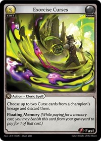 Choose up to two Curse cards from a champion's lineage and discard them.