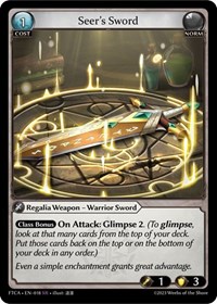 Description: [Class Bonus] On Attack: Glimpse 2. (To glimpse, look at that many cards from the top of your deck. Put those cards back on the top or on the bottom of your deck in any order.)
