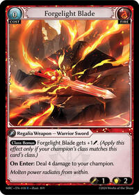 Description: [Class Bonus] Forgelight Blade gets +1 power. (Apply this effect only if your champion’s class matches this card’s class.)
