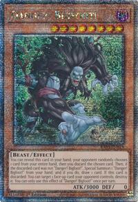 Description: You can reveal this card in your hand; your opponent randomly chooses 1 card from your entire hand, then you discard the chosen card. Then, if the discarded card was not "Danger! Bigfoot!", Special Summon 1 "Danger! Bigfoot!" from your hand, and if you do, draw 1 card. If this card is discarded: You can target 1 face-up card your opponent controls; destroy it. You can only use this effect of "Danger! Bigfoot!" once per turn.