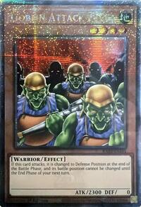 Description: If this card attacks, it is changed to Defense Position at the end of the Battle Phase, and its battle position cannot be changed until the End Phase of your next turn.