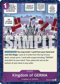 Description: [Activate:Main] You may trash 1 card from your hand and rest this Stage: Look at 3 cards from the top of your deck; reveal up to 1 card with a type including "GERMA" and add it to your hand. Then, place the rest at the bottom of your deck in any order.