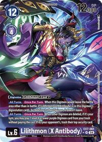 [All Turns] [Once Per Turn] When this Digimon would leave the battle area other than in battle, if [Lilithmon]/[X Antibody] in its digivolution cards, by deleting 1 other Digimon, prevent it from leaving.