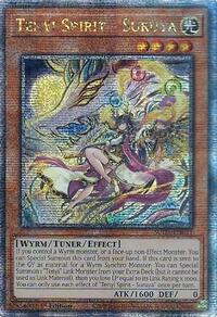 Description: If you control a Wyrm monster, or a face-up non-Effect Monster: You can Special Summon this card from your hand. If this card is sent to the GY as material for a Wyrm Synchro Monster: You can Special Summon 1 "Tenyi" Link Monster from your Extra Deck (but it cannot be used as Link Material), then you lose LP equal to its Link Rating x 1000. You can only use each effect of "Tenyi Spirit - Suruya" once per turn.