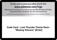 Code Card - Lost Thunder Theme Deck - "Blazing Volcano" [Entei]