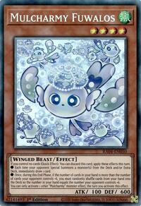 Description: If you control no cards (Quick Effect): You can discard this card; apply these effects this turn. • Each time your opponent Special Summons a monster(s) from the Deck and/or Extra Deck, immediately draw 1 card. • Once, during this End Phase, if the number of cards in your hand is more than the number of cards your opponent controls +6, you must randomly shuffle cards from your hand into the Deck so the number in your hand equals the number your opponent controls +6. You can only activate 1 other "Mulcharmy" monster effect, the turn you activate this effect.