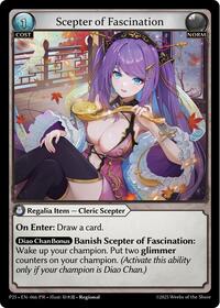 [Diao Chan Bonus] Banish Scepter of Fascination: Wake up your champion. Put two glimmer counters on your champion. (Activate this ability only if your champion is Diao Chan.)