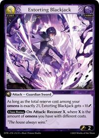 Description: As long as the total reserve cost among your omens is exactly 21, Extorting Blackjack gets +10 power.