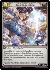 Description: Look at target opponent's hand and memory. Discard any amount of cards from among them. For each card discarded this way, that opponent reveals the top card of their deck and puts it into their hand.