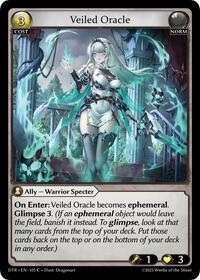 Description: On Enter: Veiled Oracle becomes ephemeral. Glimpse 3. (If an ephemeral object would leave the field, banish it instead. To glimpse, look at that many cards from the top of your deck. Put those cards back on the top or on the bottom of your deck in any order.)
