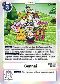Description: [On Play] You may reveal the top 5 cards of your deck. Add 1 level 3 Digimon card and 1 non-white Tamer card among them to the hand. Return the rest to the bottom of the deck.