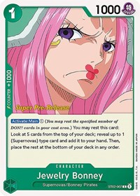 Description: [Activate: Main] (1) (You may rest the specified number of DON!! cards in your cost area.) You may rest this card: Look at 5 cards from the top of your deck; reveal up to 1 "Supernovas" type card and add it to your hand. Then, place the rest at the bottom of your deck in any order.