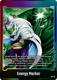 Description: At the start of the game, the player who goes second places 1 Energy Marker in their Energy Area. Removing 1 Energy Marker from the game is equivalent to switching 1 card from your energy (with the same color as your Leader) to Rest Mode.
