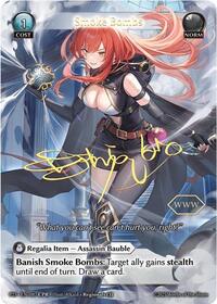 Banish Smoke Bombs: Target ally gains stealth until end of turn. Draw a card. (Units with stealth can't be targeted by attacks unless permitted by true sight.)
