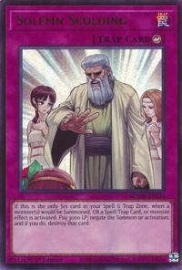 Description: If this is the only Set card in your Spell & Trap Zone, when a monster would be Summoned, OR a Spell Card, Trap Card, or monster effect is activated: Pay 3000 LP; negate the Summon or activation, and if you do, destroy that card.