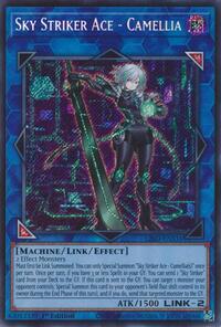 Must first be Link Summoned. You can only Special Summon "Sky Striker Ace - Camellia(s)" once per turn. Once per turn, if you have 3 or less Spells in your GY: You can send 1 "Sky Striker" card from your Deck to the GY. If this card is sent to the GY: You can target 1 monster your opponent controls; Special Summon this card to your opponent's field (but shift control to its owner during the End Phase of this turn), and if you do, send that targeted monster to the GY.