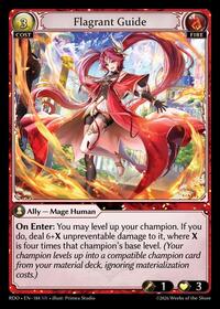 Description: On Enter: You may level up your champion. If you do, deal 6+X unpreventable damage to it, where X is four times that champion's base level. (Your champion levels up into a compatible champion card from your material deck, ignoring materialization costs.)