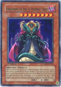 Description: This card cannot be Special Summoned by monster effects except by effect of "Vennominon, the King of Poisonous Snakes". This card is not affected by the effect of "Venom Swamp". Increase the ATK of this card by 500 points for each Reptile-Type monster in your Graveyard. By removing 1 Reptile-Type monster in your Graveyard except this card from play when this card is destroyed as a result of battle and sent to the Graveyard, you can Special Summon this card from your Graveyard.
