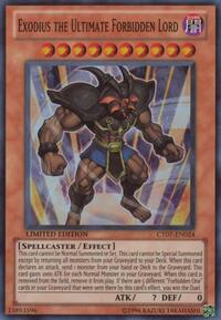Description: This card cannot be Normal Summoned or Set. This card cannot be Special Summoned except by returning all monsters from your Graveyard to your Deck. When this card declares an attack, send 1 monster from your hand or Deck to the Graveyard. This card has 1000 ATK for each Normal Monster in your Graveyard. When this card is removed from the field, remove it from play. If there are 5 different Forbidden One cards in your Graveyard that were sent there by this card's effect, you win the Duel.