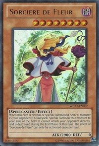 Description: When this card is Normal or Special Summoned, select 1 monster in your opponent's Graveyard. Special Summon that monster to your side of the field. It cannot attack your opponent directly, and is destroyed during the End Phase of this turn. The effect of "Sorciere de Fleur" can only be activated once per turn.