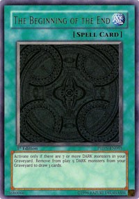 Activate only if there are 7 or more DARK monsters in your Graveyard. Remove from play 5 DARK monsters from your Graveyard to draw 3 cards.