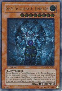 Description: This card cannot be Normal Summoned or Set. This card cannot be Special Summoned except by removing from play 3 LIGHT Fairy-type monsters and 1 DARK Fiend monster in your Graveyard. Once per turn, you can remove from play 1 face-up monster on the field. If you activate this effect, this card cannot attack during this turn.