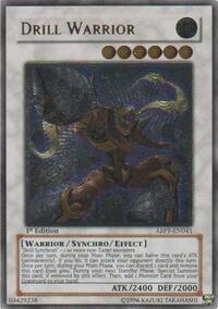 Description: "Drill Synchron" + 1 or more non-Tuner monsters. Once per turn, during your Main Phase, you can halve this card's ATK (permanently). If you do, it can attack your opponent directly this turn. Once per turn, during your Main Phase, you can discard 1 card and remove this card from play. During your next Standby Phase, Special Summon this card, if removed by this effect. Then, add 1 Monster Card from your Graveyard to your hand.