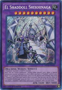 Must first be Fusion Summoned. During either player''s turn, when a Special Summoned monster activates its effect while you have a "Shaddoll" card in your hand: You can negate the activation, and if you do, destroy that monster, then send 1 "Shaddoll" card from your hand to the Graveyard. You can only use this effect of "El Shaddoll Shekhinaga" once per turn. If this card is sent to the Graveyard: You can target 1 "Shaddoll" Spell/Trap Card in your Graveyard; add it to your hand.