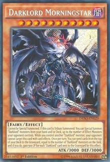 Description: Cannot be Special Summoned. If this card is Tribute Summoned: You can Special Summon "Darklord" monsters from your hand and/or Deck, up to the number of Effect Monsters your opponent controls. While you control another "Darklord" monster, your opponent cannot target this card with card effects. Once per turn: You can send cards from the top of your Deck to the Graveyard, equal to the number of "Darklord" monsters on the field, and if you do, gain 500 LP for each "Darklord" card sent to the Graveyard by this effect.