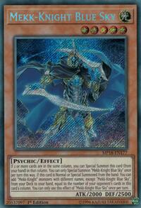 Description: If 2 or more cards are in the same column, you can Special Summon this card (from your hand) to that column. You can only Special Summon "Mekk-Knight Blue Sky" once per turn this way. If this card is Normal or Special Summoned from the hand: You can add "Mekk-Knight" monsters with different names, except "Mekk-Knight Blue Sky", from your Deck to your hand, equal to the number of your opponent''s cards in this card''s column. You can only use this effect of "Mekk-Knight Blue Sky" once per turn.