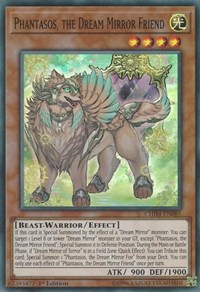 Description: If this card is Special Summoned by the effect of a "Dream Mirror" monster: You can target 1 Level 8 or lower "Dream Mirror" monster in your GY, except "Phantasos, the Dream Mirror Friend"; Special Summon it in Defense Position. During the Main or Battle Phase, if "Dream Mirror of Terror" is in a Field Zone (Quick Effect): You can Tribute this card; Special Summon 1 "Phantasos, the Dream Mirror Foe" from your Deck. You can only use each effect of "Phantasos, the Dream Mirror Friend" once per turn.