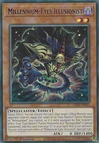 Description: (Quick Effect): You can discard this card, then target 1 Effect Monster your opponent controls; equip that target to an "Eyes Restrict" Fusion Monster or "Relinquished" you control, as if it were equipped by that monster's effect. If an "Eyes Restrict" Fusion Monster(s) or a "Relinquished" is Special Summoned: Add this card from your GY to your hand (this is not optional). You can only use each effect of "Millennium-Eyes Illusionist" once per turn.