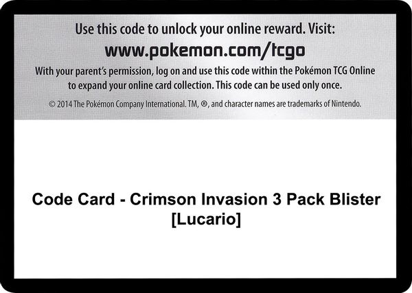 Code Card - Crimson Invasion 3 Pack Blister [Lucario]